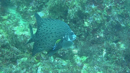 写真はイシガキダイがホンソメワケベラという魚に体についた寄生虫などをクリーニングしてもらっているところです。