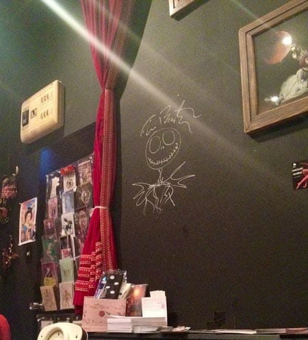 ナイトメアビフォークリスマスで有名なティム・バートンが、来日した時には必ず来るらしく壁にジャックの絵と直筆のサインが書いてありました。