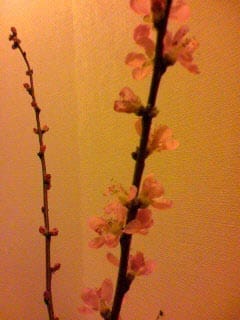 そんな中ですが我が家の花瓶の中の梅の花が咲きました。