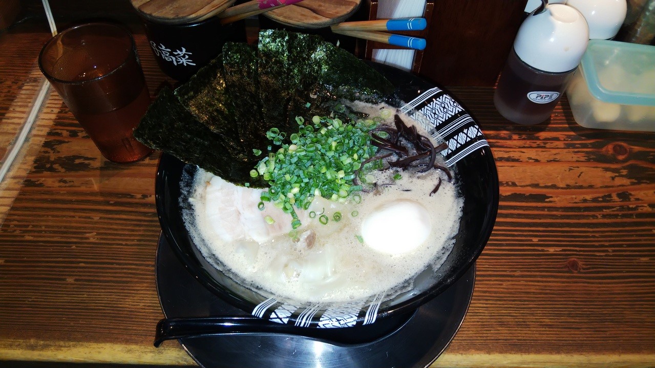 何にしようかと悩んでみたものの、やはりここは博多豚骨ラーメンでしょうと、