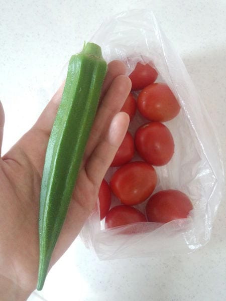 もう一つは裏庭の家庭菜園で収穫したオクラです。