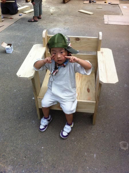 先日暑い中,家を建築してもらった会社のイベントで子供と一緒に椅子を
