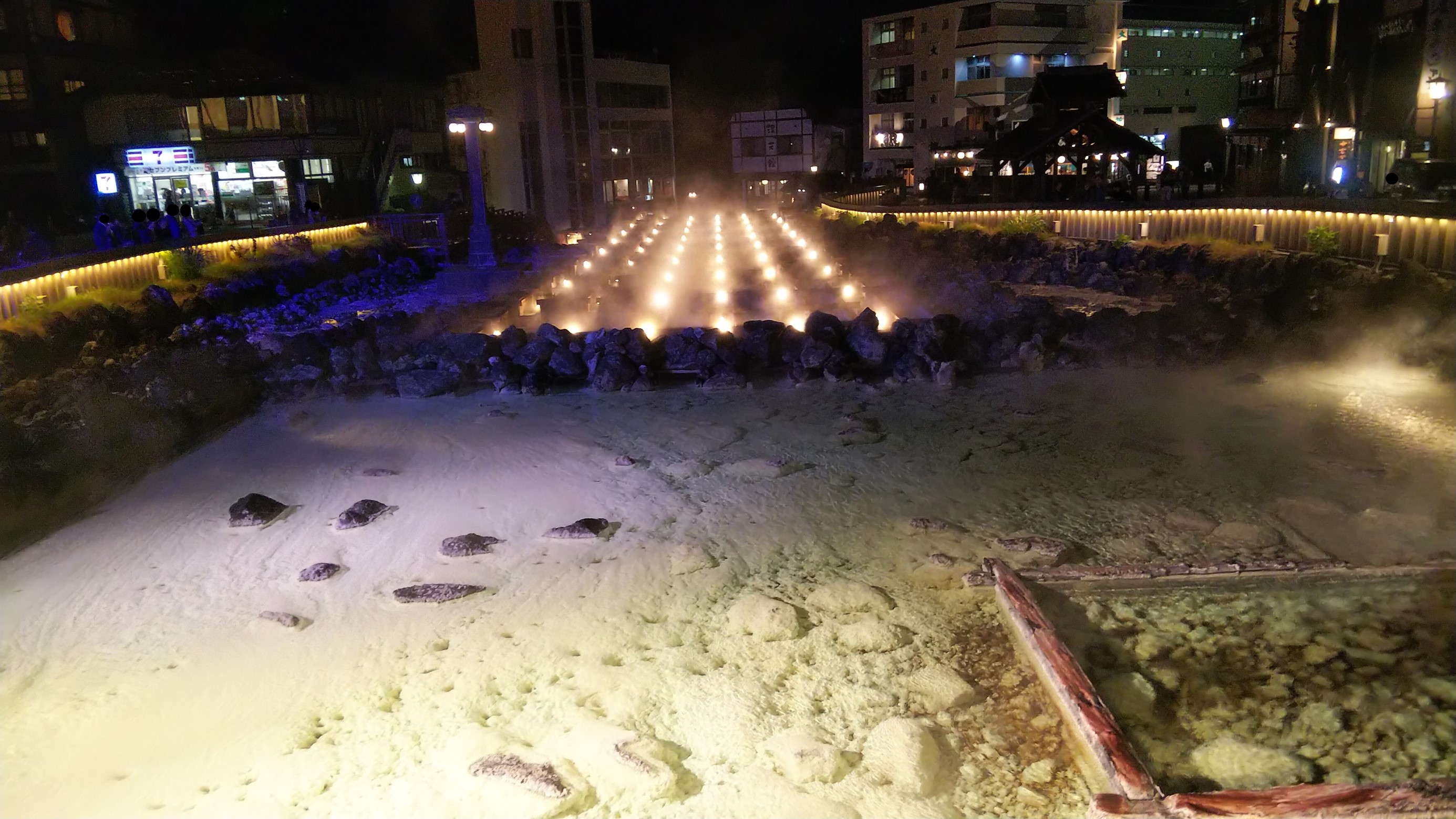 夜の湯畑はライトアップされていてとても綺麗(*^^)