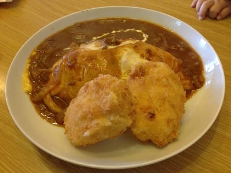 オムライスが有名なお店で、当然それを注文。カニクリームコロッケも付けてみました。