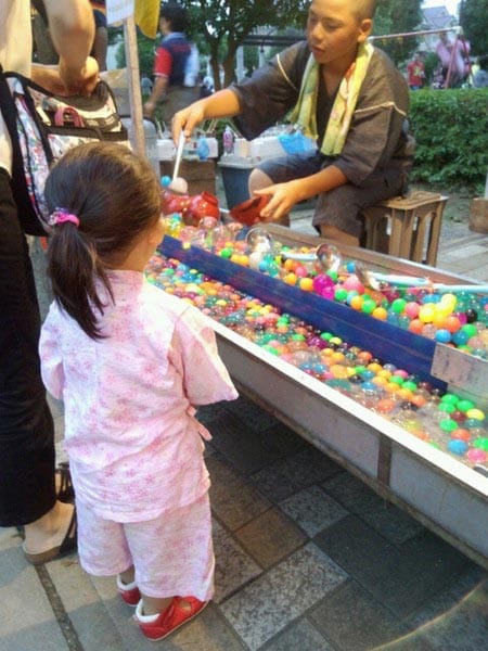 食べ物には目もくれず、スパーボールすくいを見つけてまっしぐら!