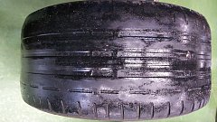 このタイヤを見てお客様はどう思われますでしょうか?? 危なそう・・・。 滑りそう・・・。 色々思うところはあると思います。 事実、このタイヤはつい最近までお客様が知らずに使われてました。 この状態、スリップサインまで使っている状態なのですが・・・こうなっては車検も通らないのと 万が...