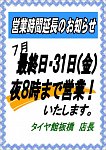 7月も終わりに近付いておりますが、 明日31日は、20時迄営業となります!! 8月のお出掛け前に是非、タイヤやオイル類の 無料点検を受けられては如何ですか? もちろん、空気圧の点検だけでOKです! 是非、お待ちしております 本日のPIT状況です。 画像1:明日は20時迄営業です。 画像2:...