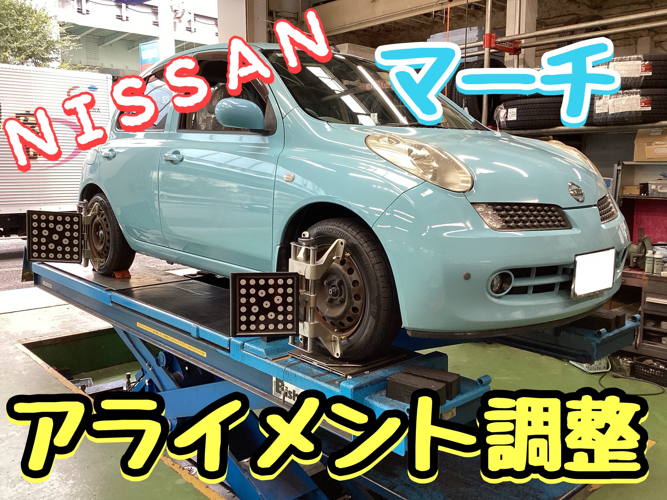 【日産 マーチ】 タイヤの角度調整‼️(アライメント)