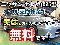 ニッサン セレナ(C25型)入庫です! 今回はオイル交換で入庫したおクルマのご紹介です! サムネイルにもある通り… 実は!オイル交換のみなら交換工賃は無料なんです! 以前からタイヤ館でおクルマのメンテナンスをされていた方ならもちろんご存じだとは思いますが、 工賃無料ってなんだかステキな響...