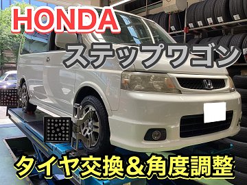 【ホンダ ステップワゴン】タイヤがバースト!! タイヤ交換&角度調整!
