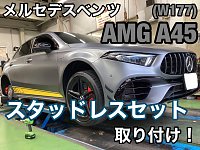 メルセデスベンツ AMG A45(W177) 入庫です! 今回はコチラのお車にスタッドレスセットをお取り付けしました! 19インチ装着車に18インチをお取り付けです! 純正19インチからスタッドレス18インチへ 19インチでこのパツパツ感なので、正直18インチが装着できるのか不安でしたが…。 18インチ、バッチ...