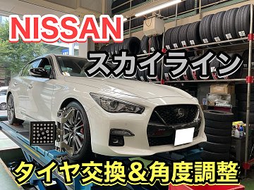 【日産 スカイライン】タイヤ交換&角度調整‼️ ランフラットタイヤ!ポテンザS001