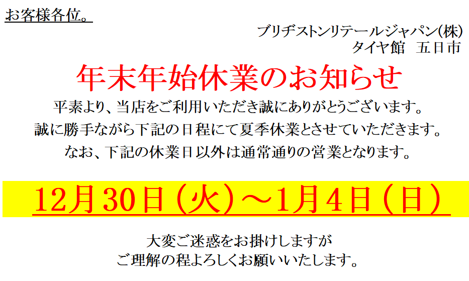 コクピット・タイヤ館年末大感謝キャンペーン開催!