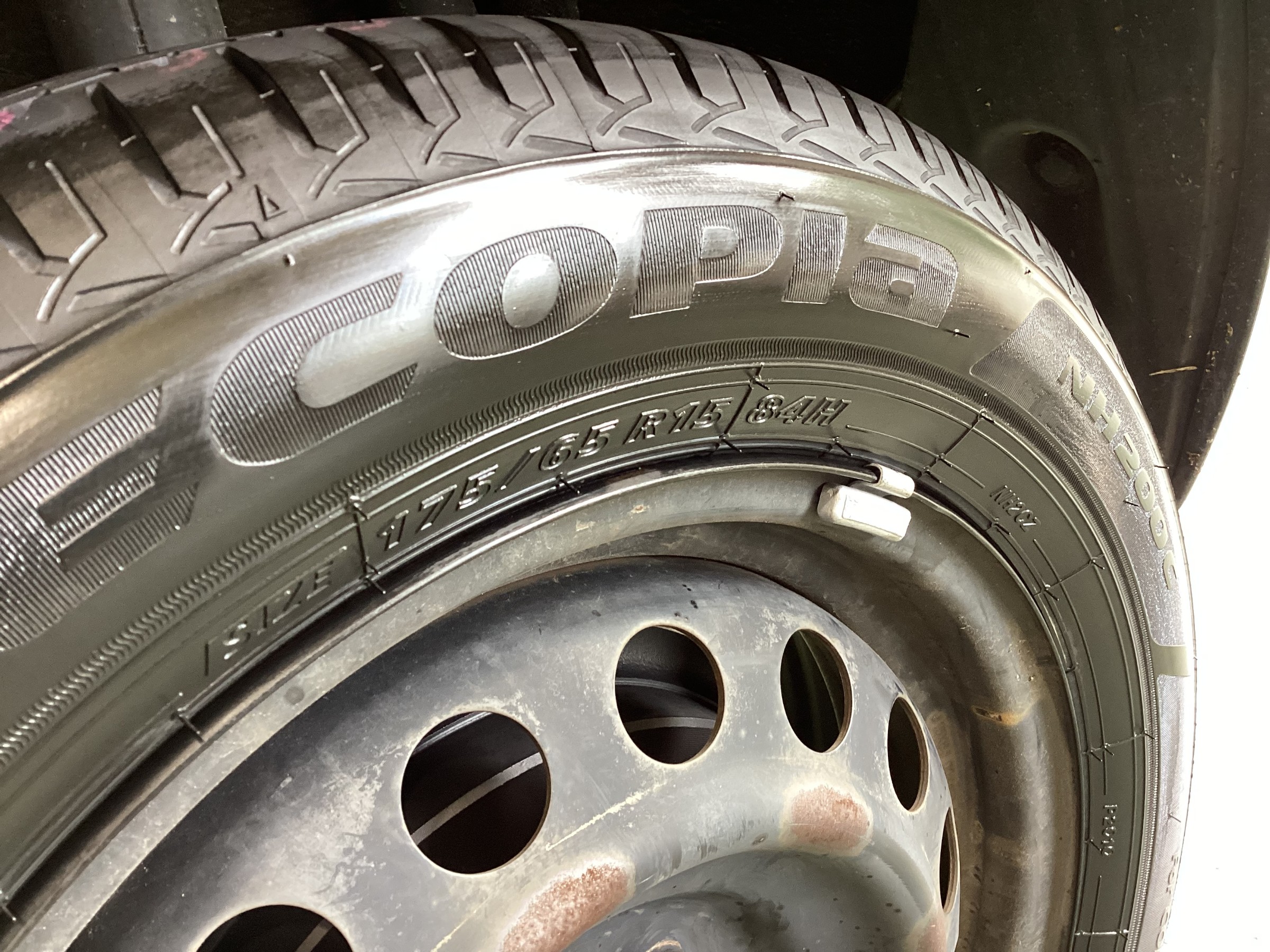 タイヤの銘柄はブリヂストン エコピアNH200Cで、サイズは175/65R15です。