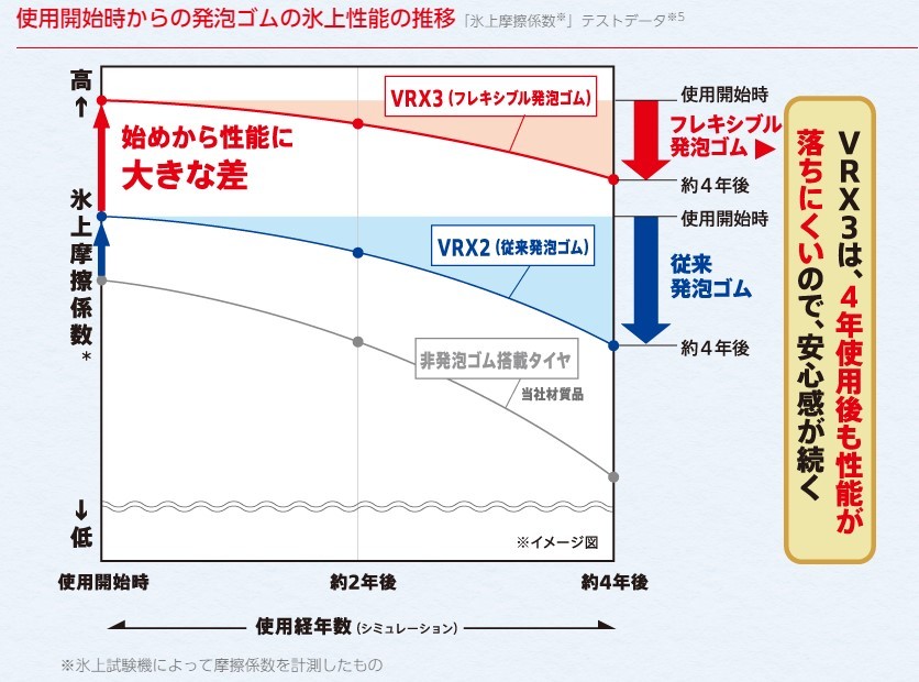 このVRX3は4年使用後も性能が落ちにくく、ゴムの柔らかさを維持しますので、