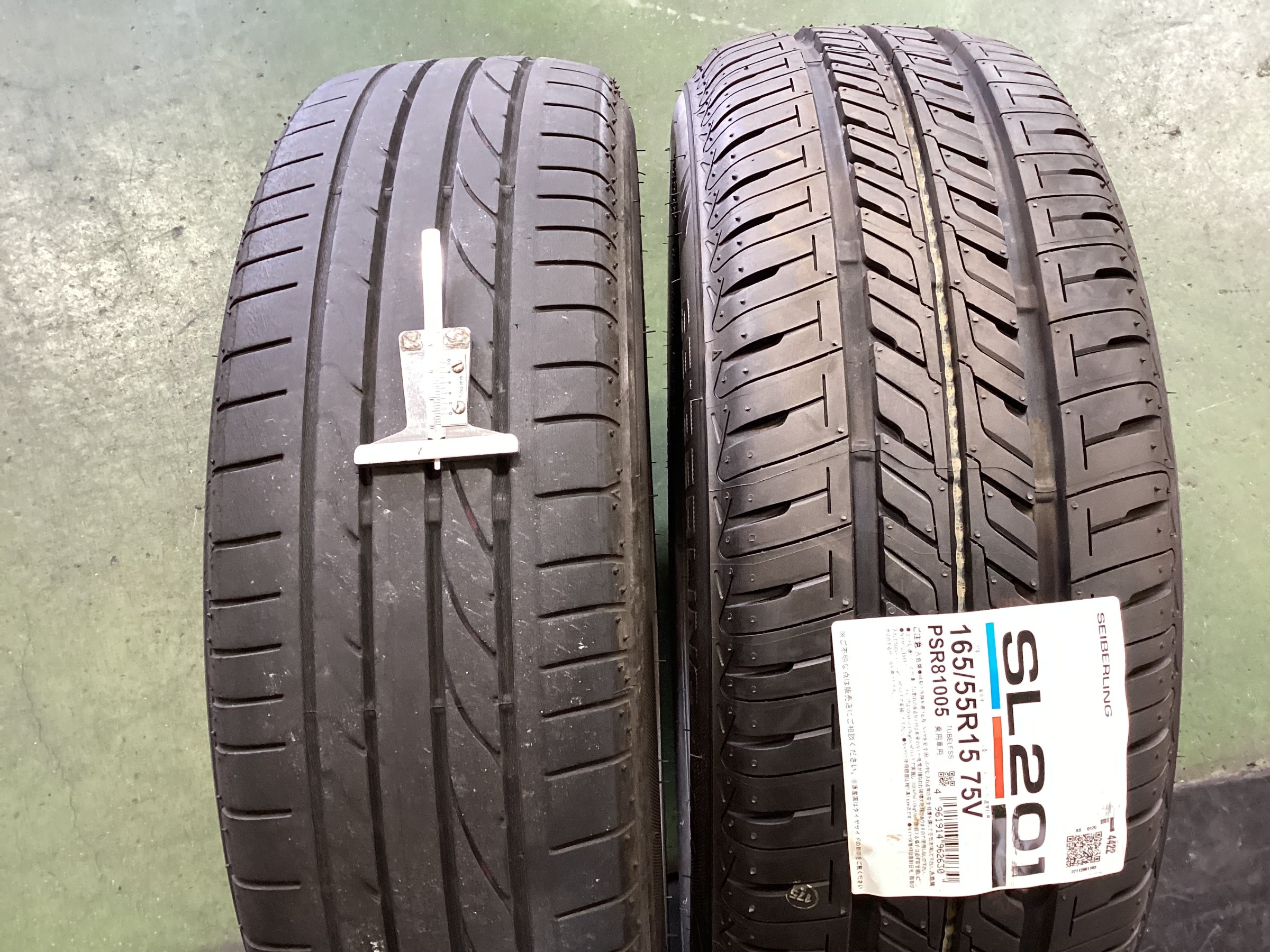 タイヤの銘柄はセイバーリング SL201で、サイズは165/55R15です。