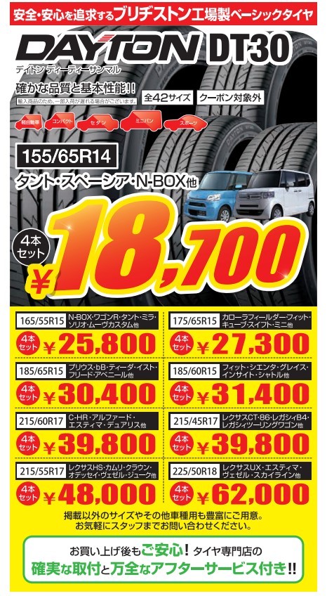 ブリヂストン工場製なのにコスパに優れたデイトンタイヤ!