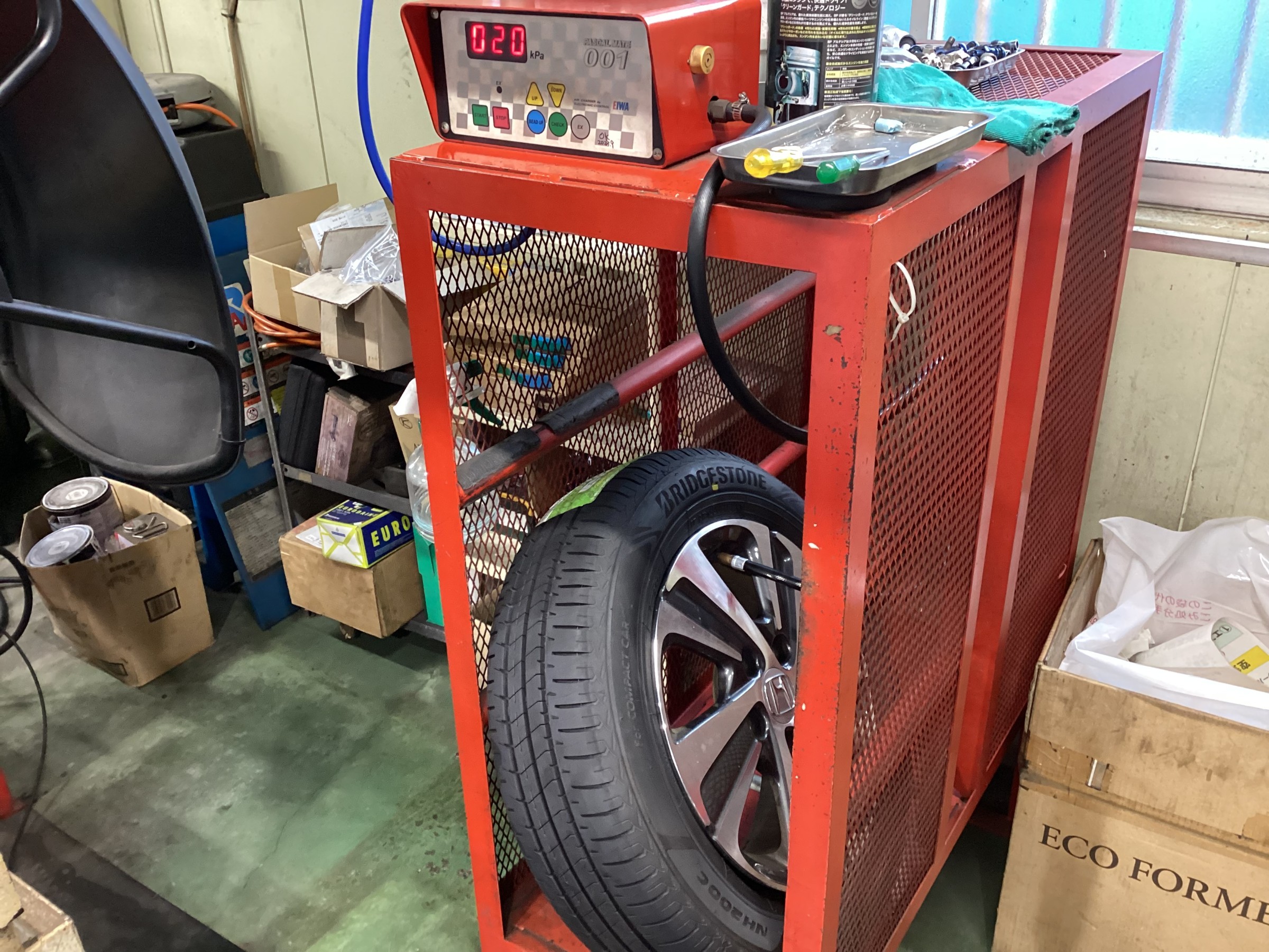 組付け後はエア充填作業ですが、充填作業は危険が伴います!