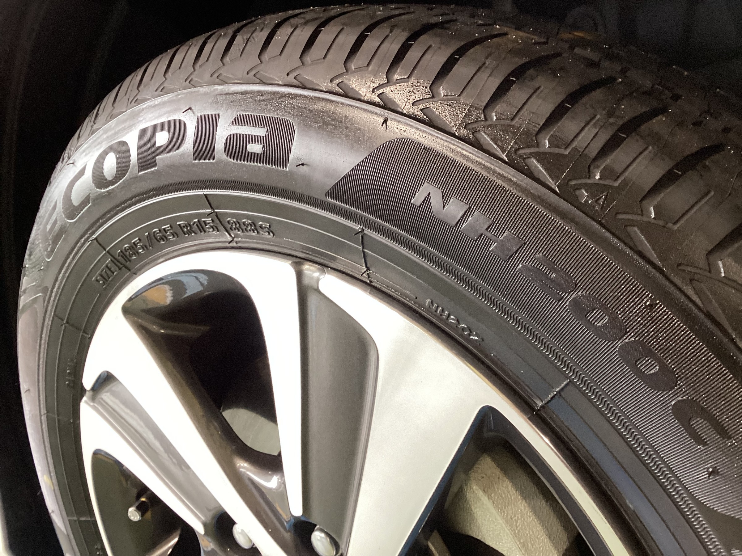 タイヤの銘柄は、ブリヂストン エコピアNH200Cで、サイズは185/65R15です。