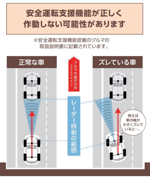サポカーはアライメント不良ですと、正常にシステムが発揮できない