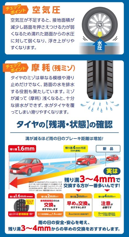 雨の日に安心して走行するためにもタイヤのミゾは大切です!