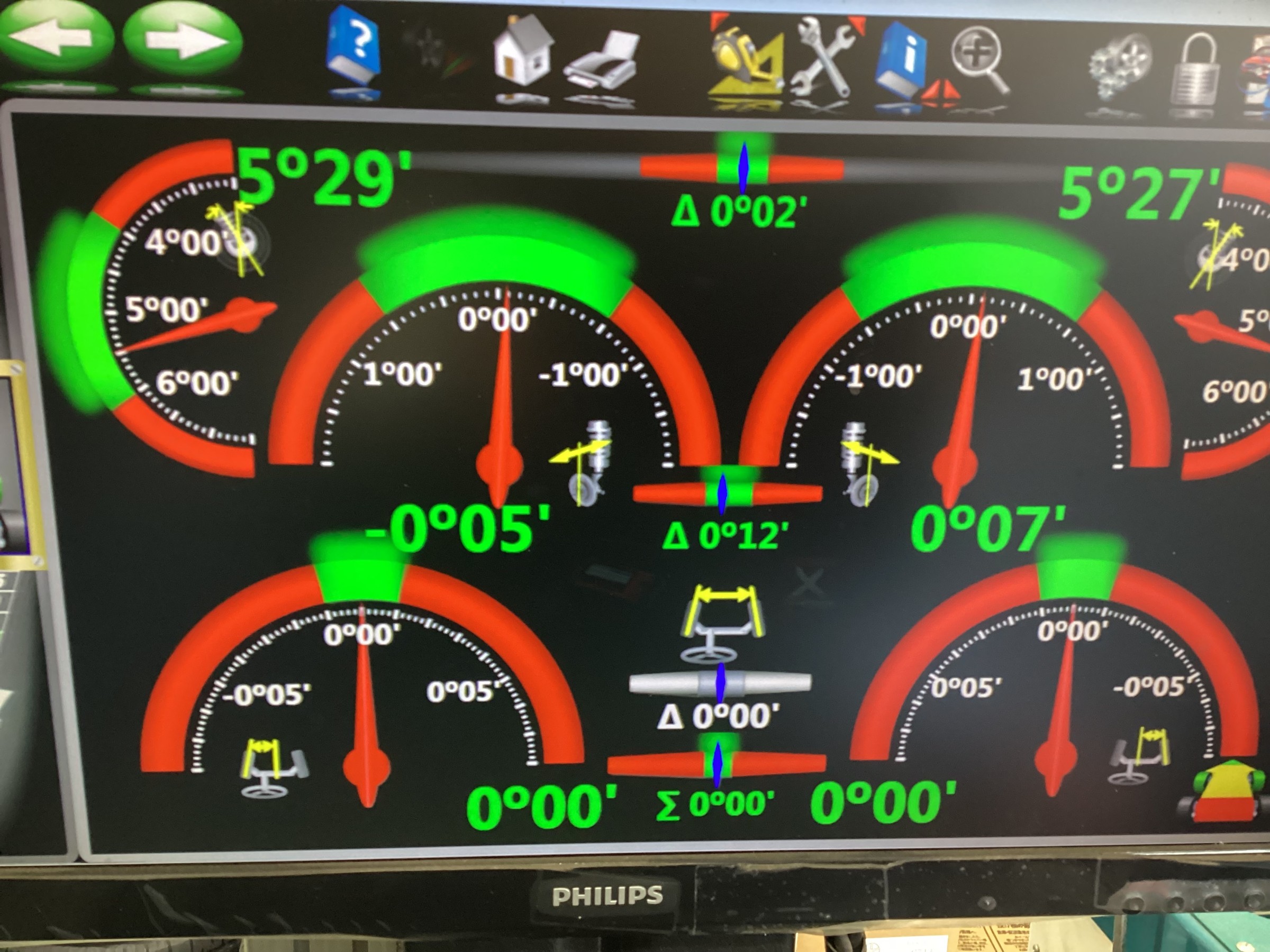 フロントタイヤが内股の状態のトーインという状態でハンドルのセンターも右に少し傾いた状態でした。