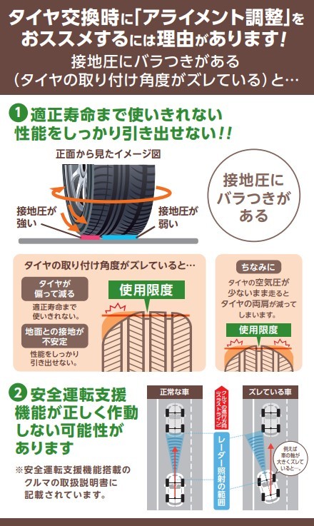 サポカーはアライメント不良ですと、正常にシステムが発揮できない