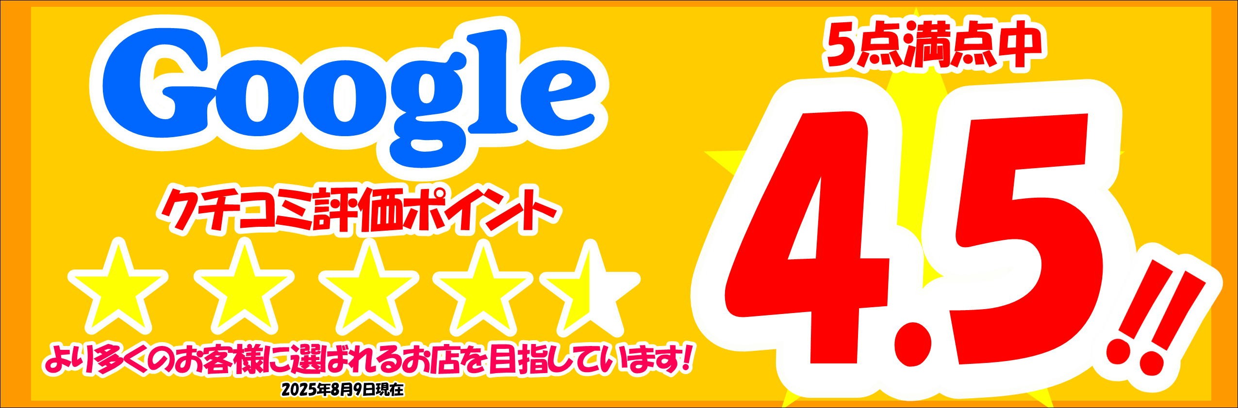 タイヤ館五日市店はグーグル口コミ評価4.5を頂いております!