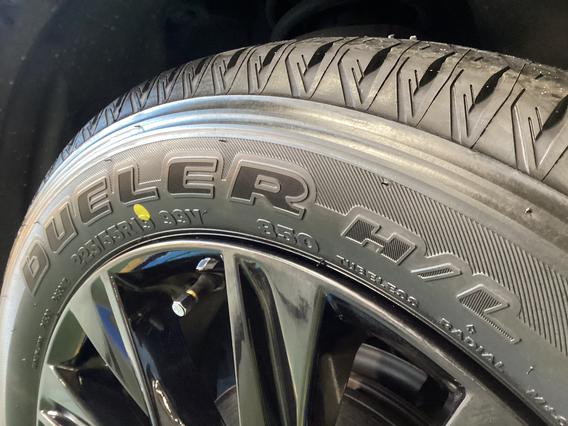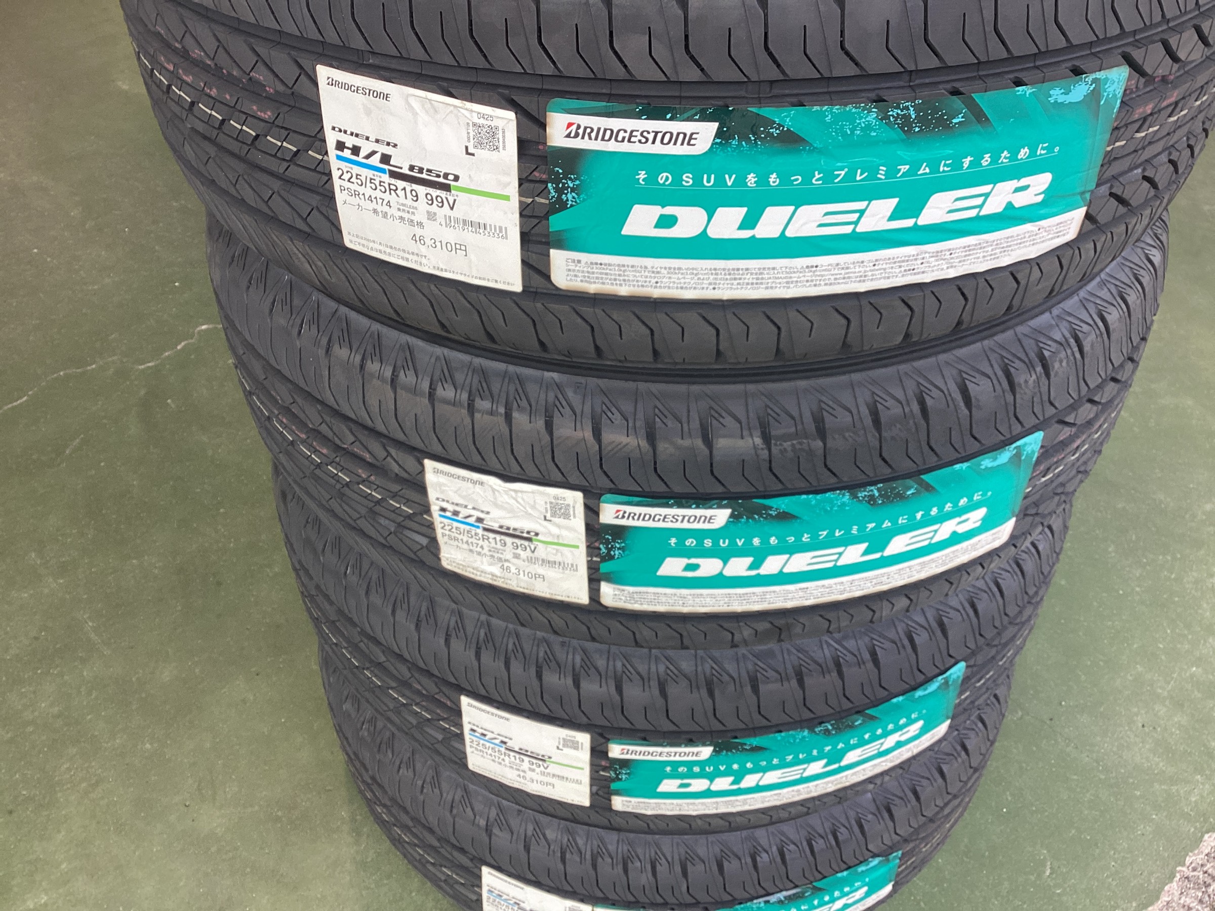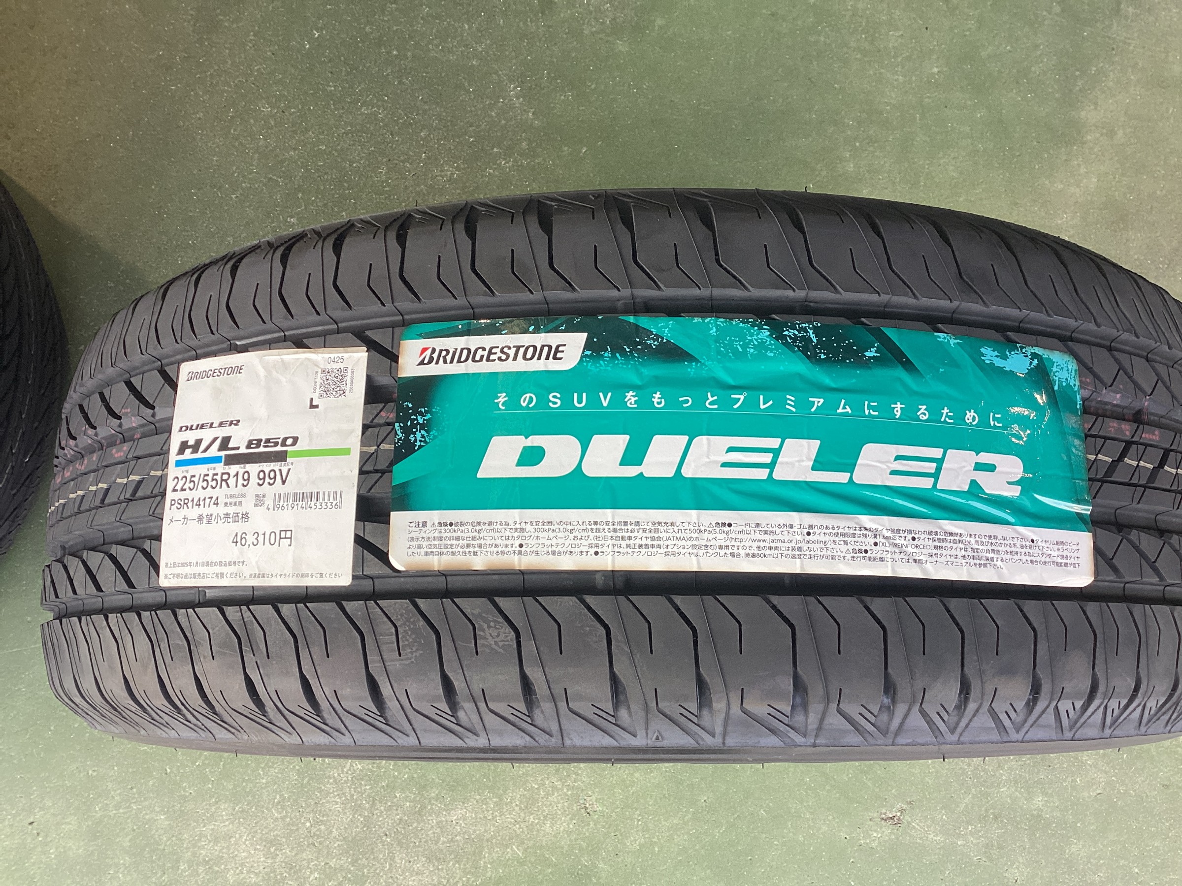タイヤの銘柄はブリヂストン デューラーH/L850で、サイズは225/55R19です。
