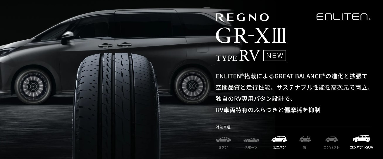 タイヤの銘柄は、ブリヂストン レグノGR-XⅢ TYPE RVで、