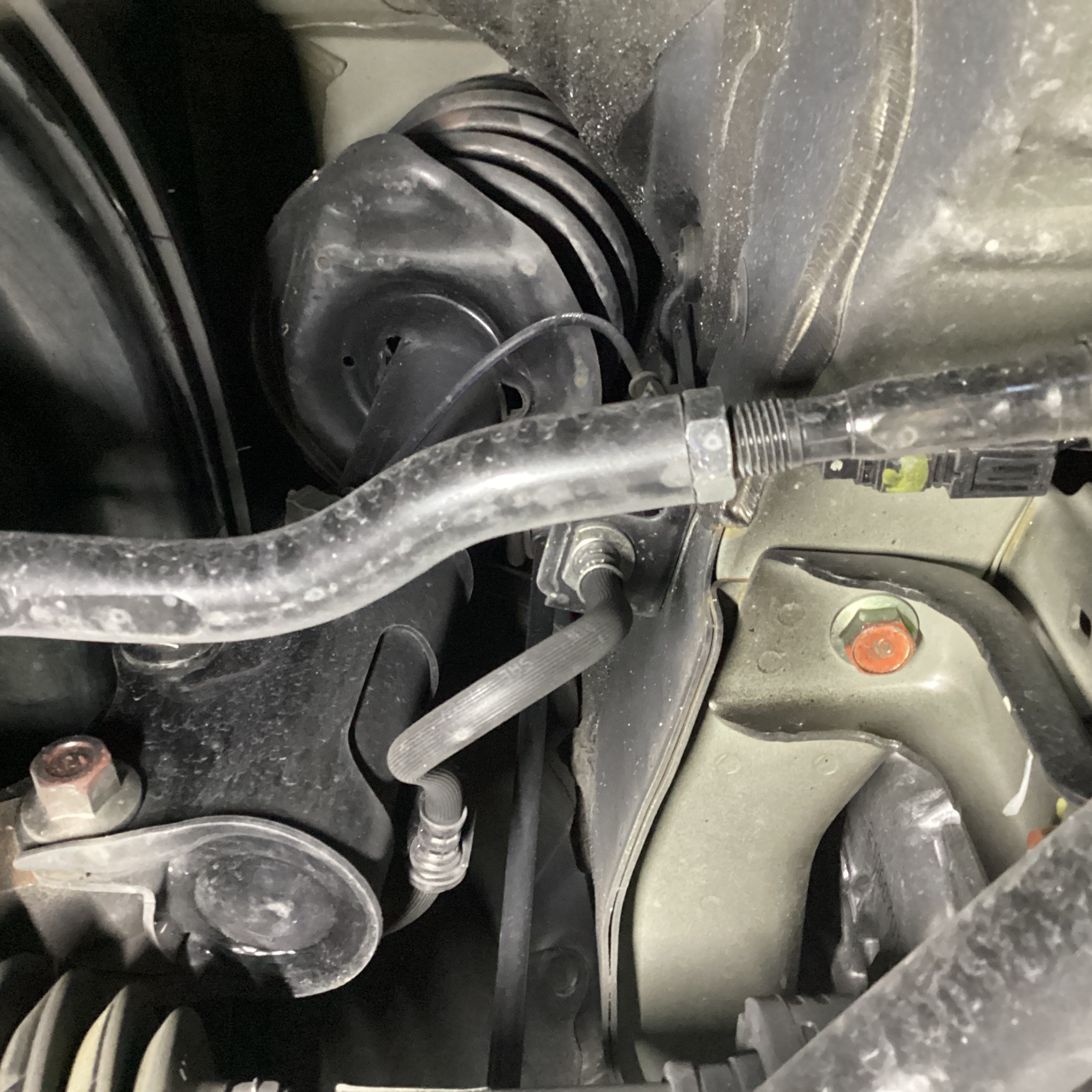 ですが指をさしている箇所、前輪のトー角度に若干ズレが生じてきてます・・・・。