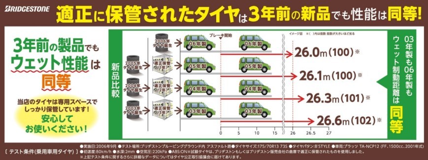 適正に保管されたタイヤは3年前の新品でも