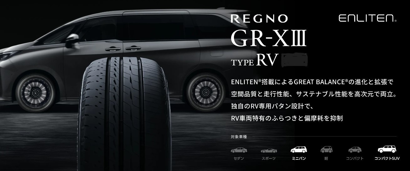 タイヤの銘柄は、ブリヂストン レグノGR-XⅢ TYPE RVで、