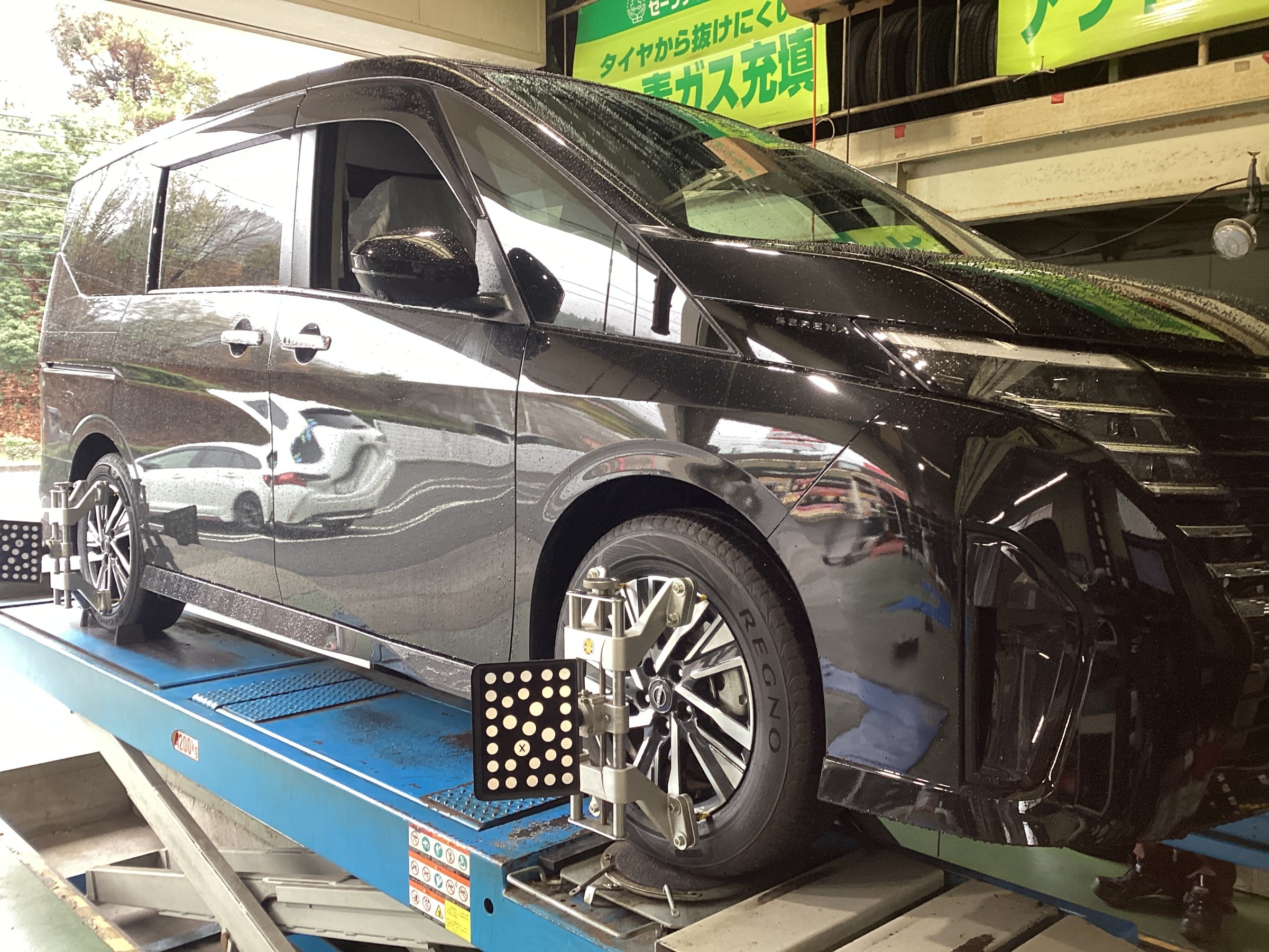 日産C28型セレナ レグノGR-XⅢ TYPE RVへタイヤ交換&アライメント調整完了です!