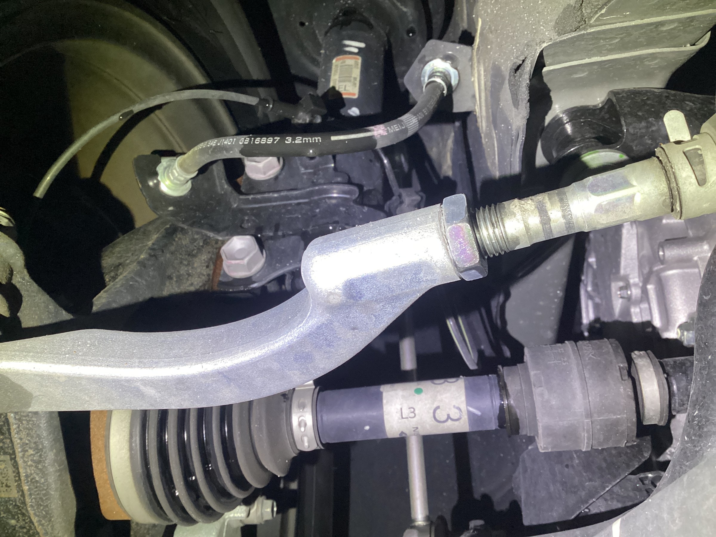 この型のお車は前輪のトー調整可能な合計2か所調整車です。