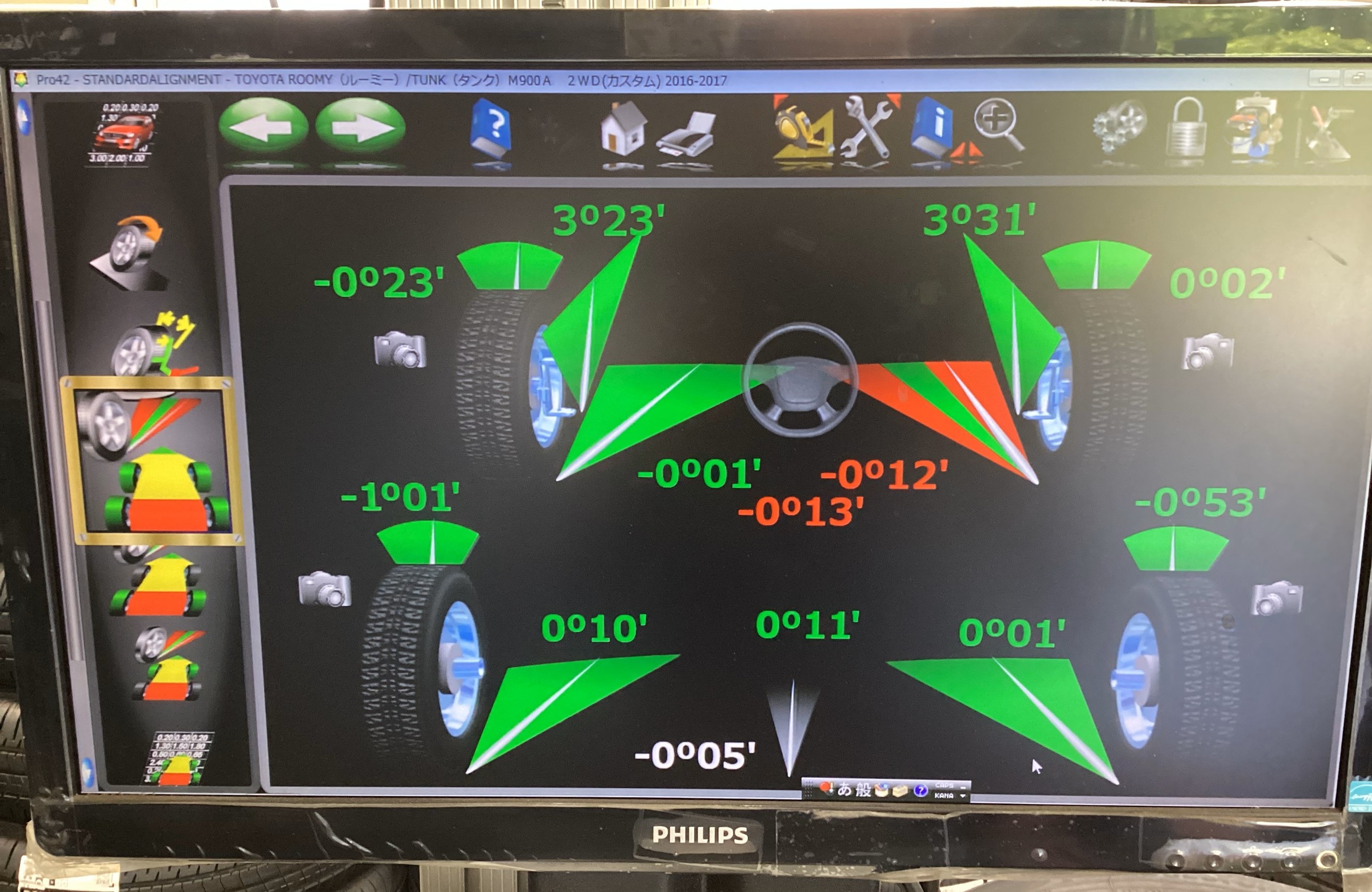 本日はトヨタ、タンク/ルーミーのアライメント調整のご紹介です。