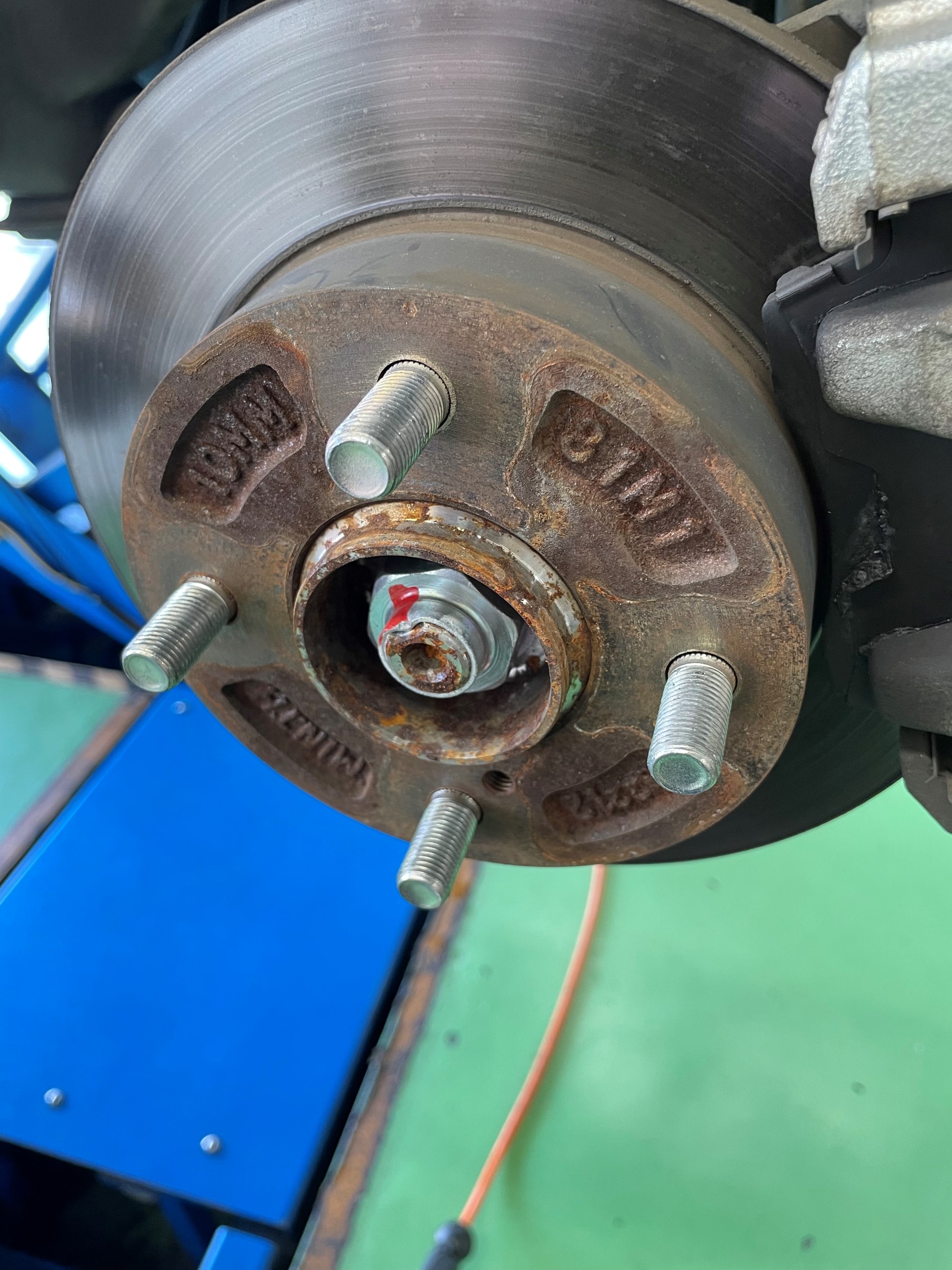 ↑作業前 こちらの純正アルミホイールにスタッドレスタイヤを組み付けていきます。