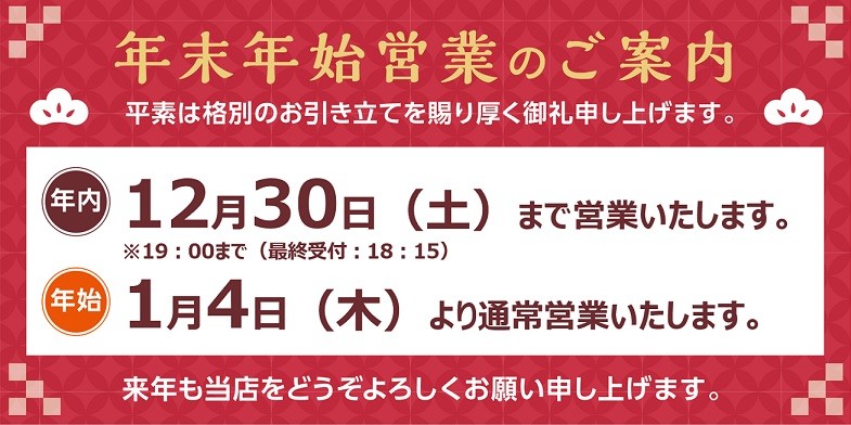 年始の営業は1/4(木)AM10:30~となります。