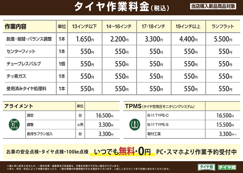 タイヤ交換、その他作業予約はコチラから♪