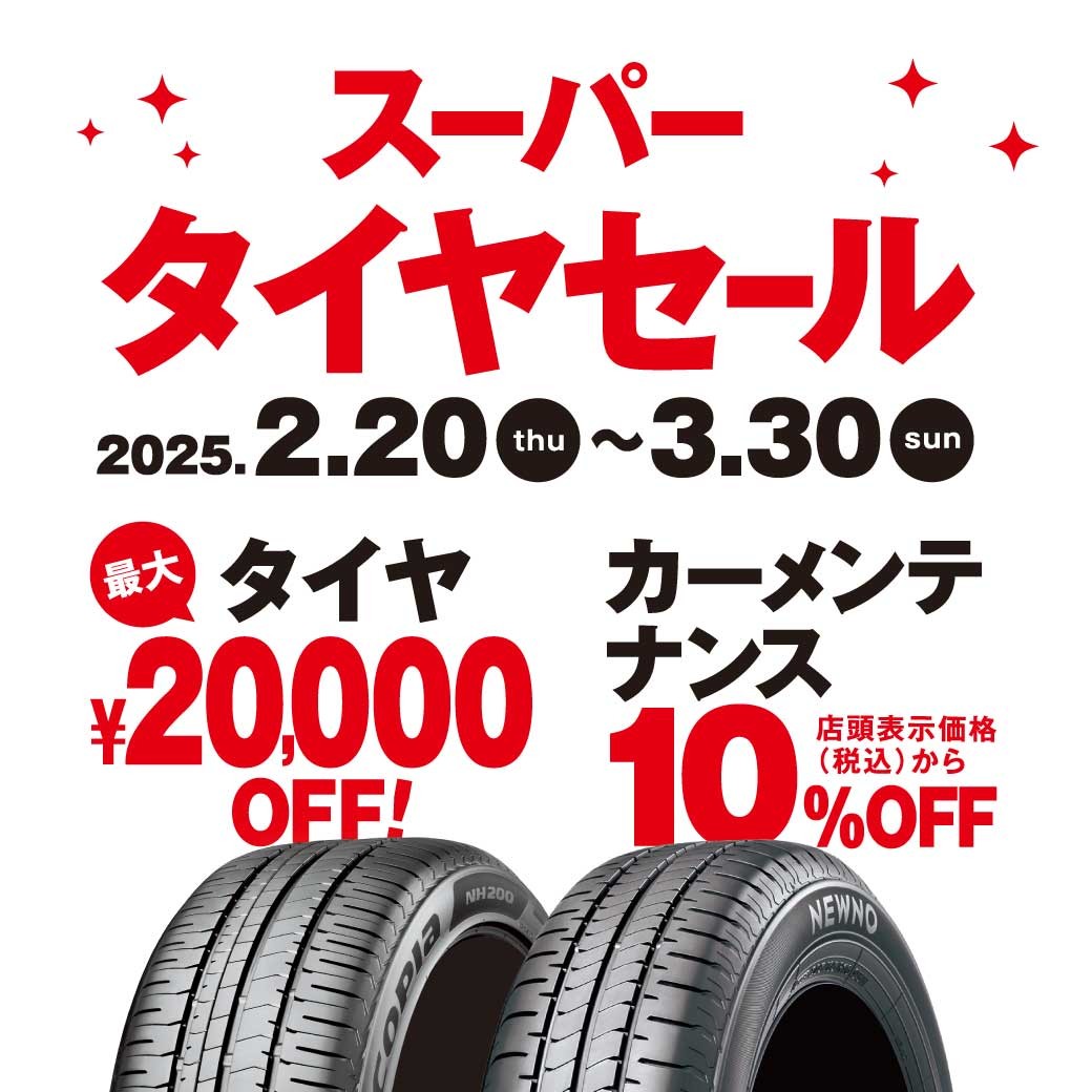 タイヤは最大20000円引き!メンテナンス商品もお買い得!