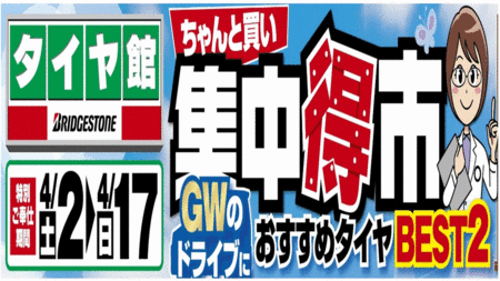 セールも残り一日(^^) ポスト 2016年4月16日 4月2日(土曜日)から始まりましたセール(^^)『集中得市』も4月17日(日曜日)まで!!ゴールデンウィークでのお出掛け前に・・・タイヤ交換はもちろん・・・お車のメンテナンス品もお任せ下さい♪♪皆様のご来店お待ちしております(^^)
