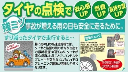 セール開催中(^^) ポスト 2016年5月28日 タイヤ館岩出店、只今セール開催中ですよー(^^)梅雨入り前に…只今天候は雨模様ですね。タイヤも溝が少ないと雨の日にはスリップも…。タイヤが接地している面積はわずか「はがき約1枚」分。この面の溝だけで水をかき出しています。重要なんですよー♪♪タイヤの点検も空気圧点検も無料ですよー♪♪皆様のご来店をお待ちしております。(^^)