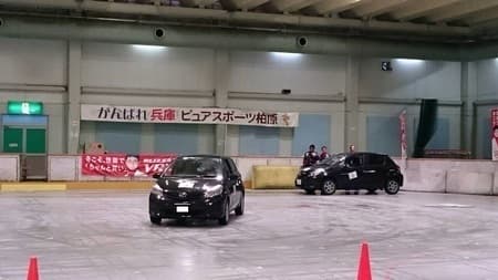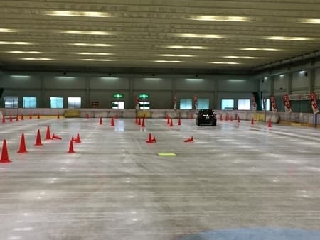 試乗会の内容はスケートリンク場での