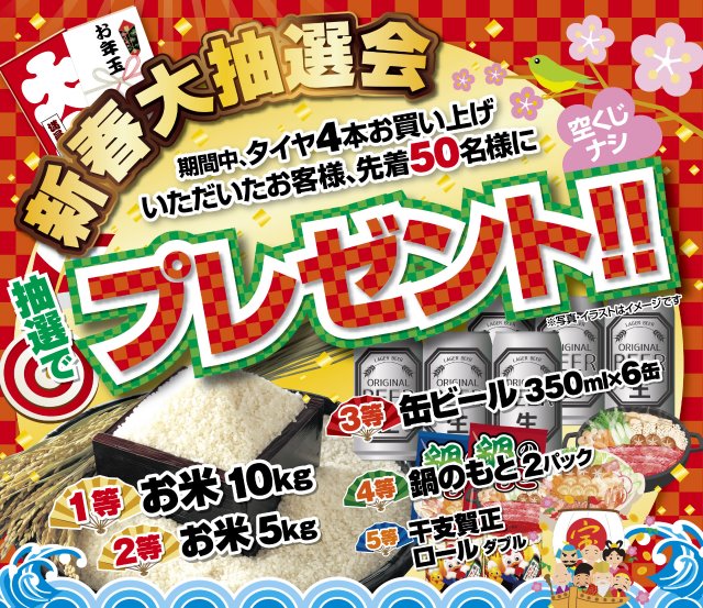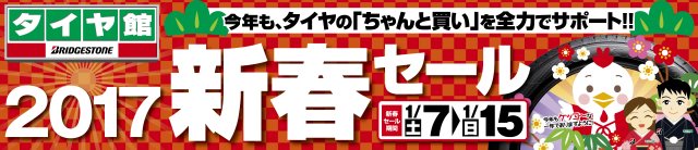 『2017年新春セール』開催いたします。 ポスト 2017年1月6日 あけましておめでとうございます(^^)1月7日(土)から1月15日(日)まで【2017年新春セール】を開催いたします♪タイヤ4本お買い上げで先着50名様に素敵な景品をプレゼント!!本年も皆様のカーライフに少しでもお役に立てるようスタッフ一同明るくより身近な店舗を目指し、頑張ります。皆様のご来店心からお待ちしております!! 担当:辻