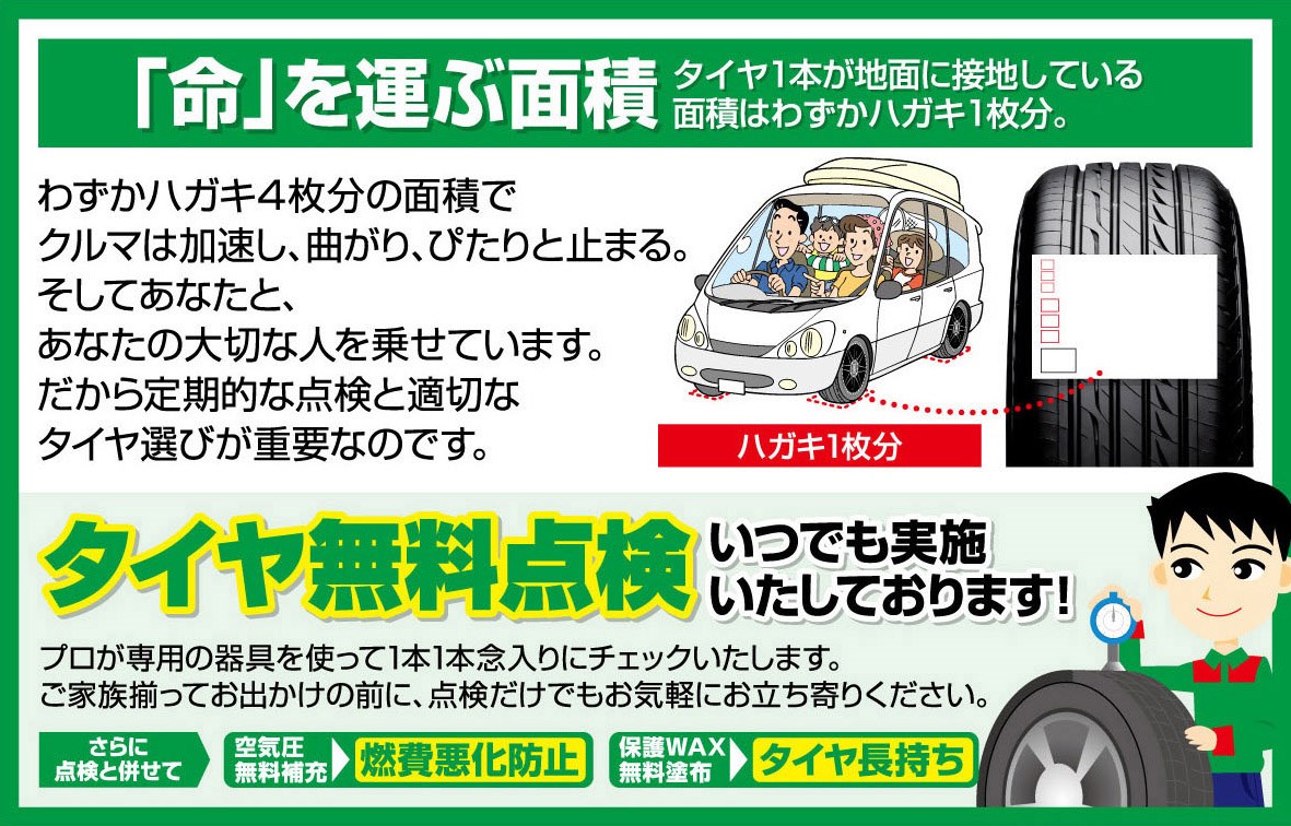 また【タイヤ館岩出】では安全点検を無料で行っております。