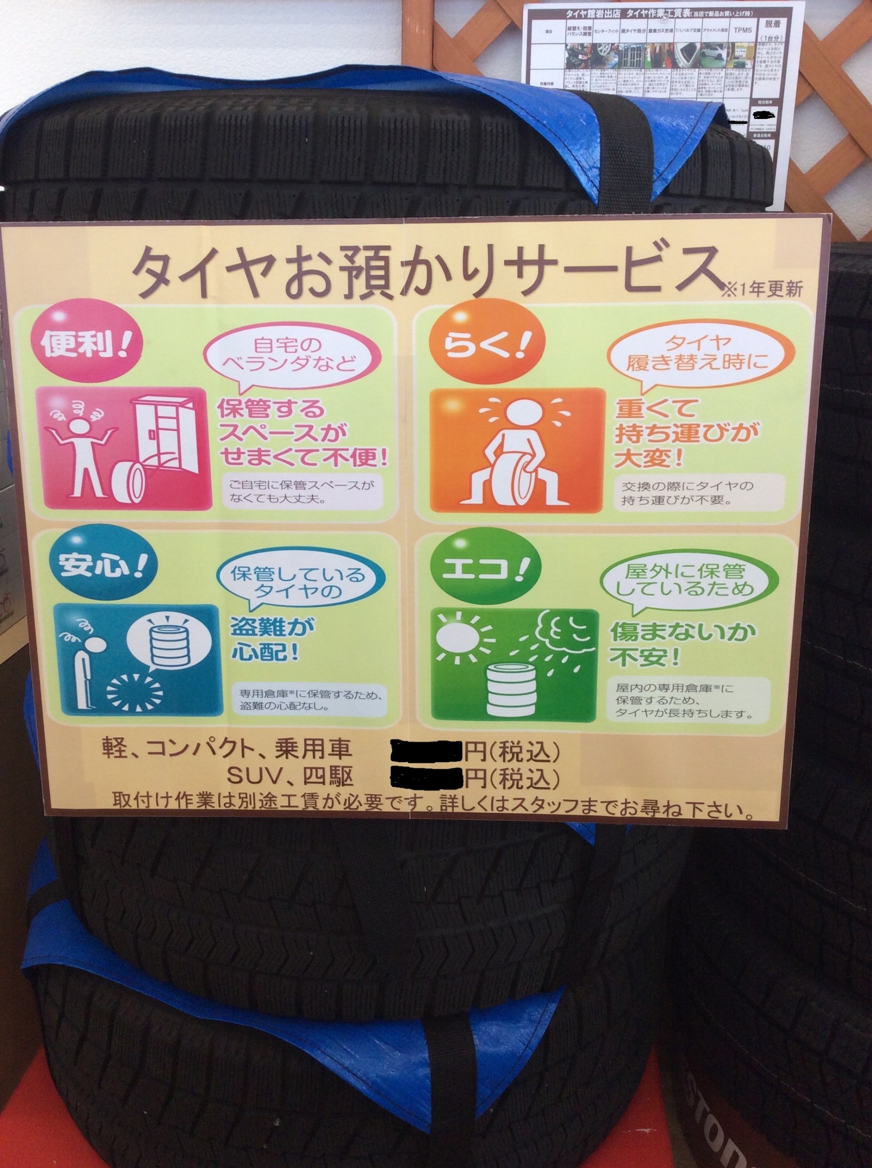 重たいタイヤを持たなくていいですし盗難の心配やタイヤの劣化、痛みの心配もいりません。