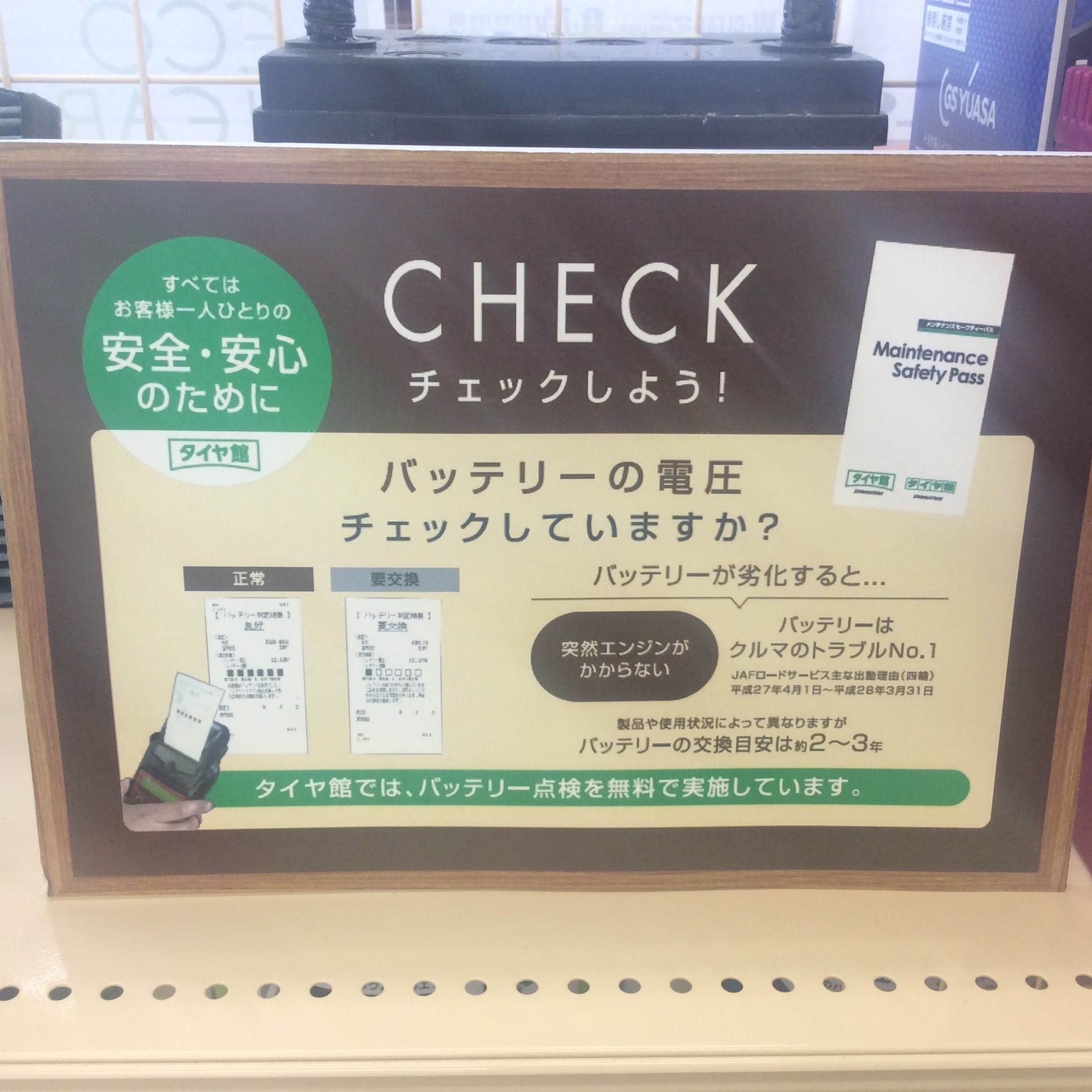 当店ではバッテリー含む、無料安全点検を実施しております。