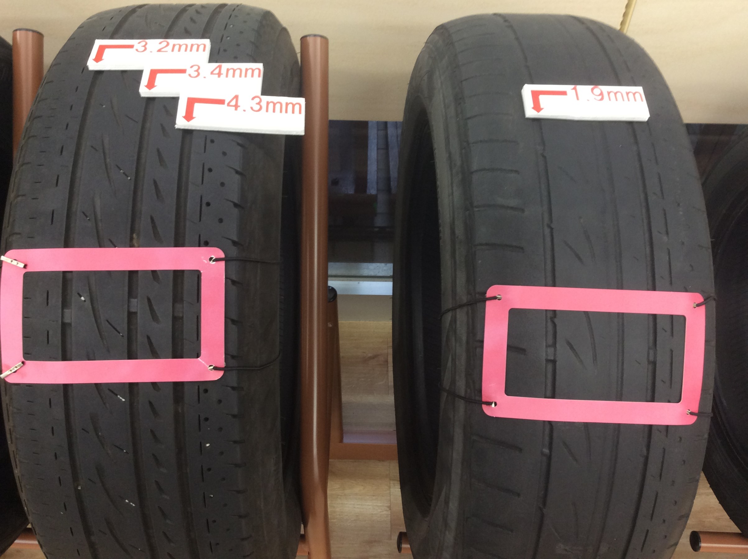 お客様のタイヤの溝の点検・空気圧の点検・タイヤのキズ・タイヤの偏摩耗