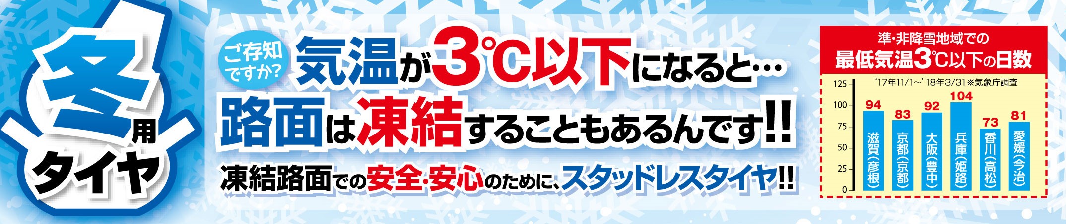 冬には冬用タイヤの方が万が一の降雪や凍結にはより安心頂けると思います。