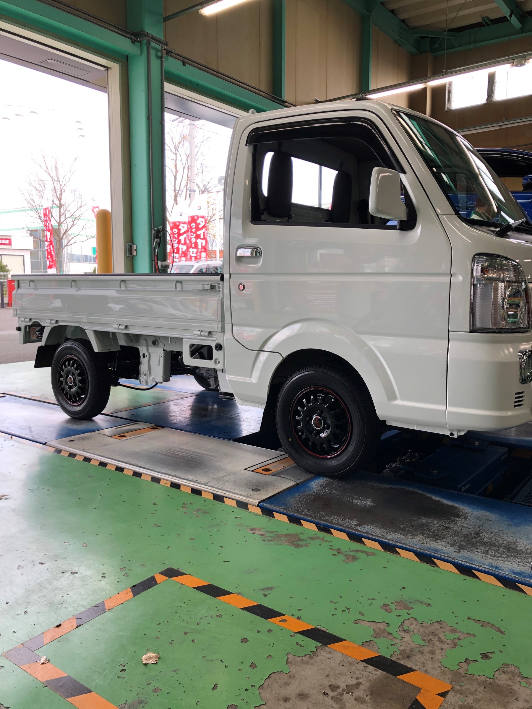 働く車もお洒落に♪ ポスト 2019年12月17日 お車は現行キャリー DA16T で納車直後にアルミホイールセットを装着させて頂きました! JWL-T適合なので車検も問題なくクリアなので安心です♪ 純正のスチールホイールからお洒落に、車検も通るアルミホールをお探しでしたら 是非一度ご来店お待ちしております! 担当:鈴木